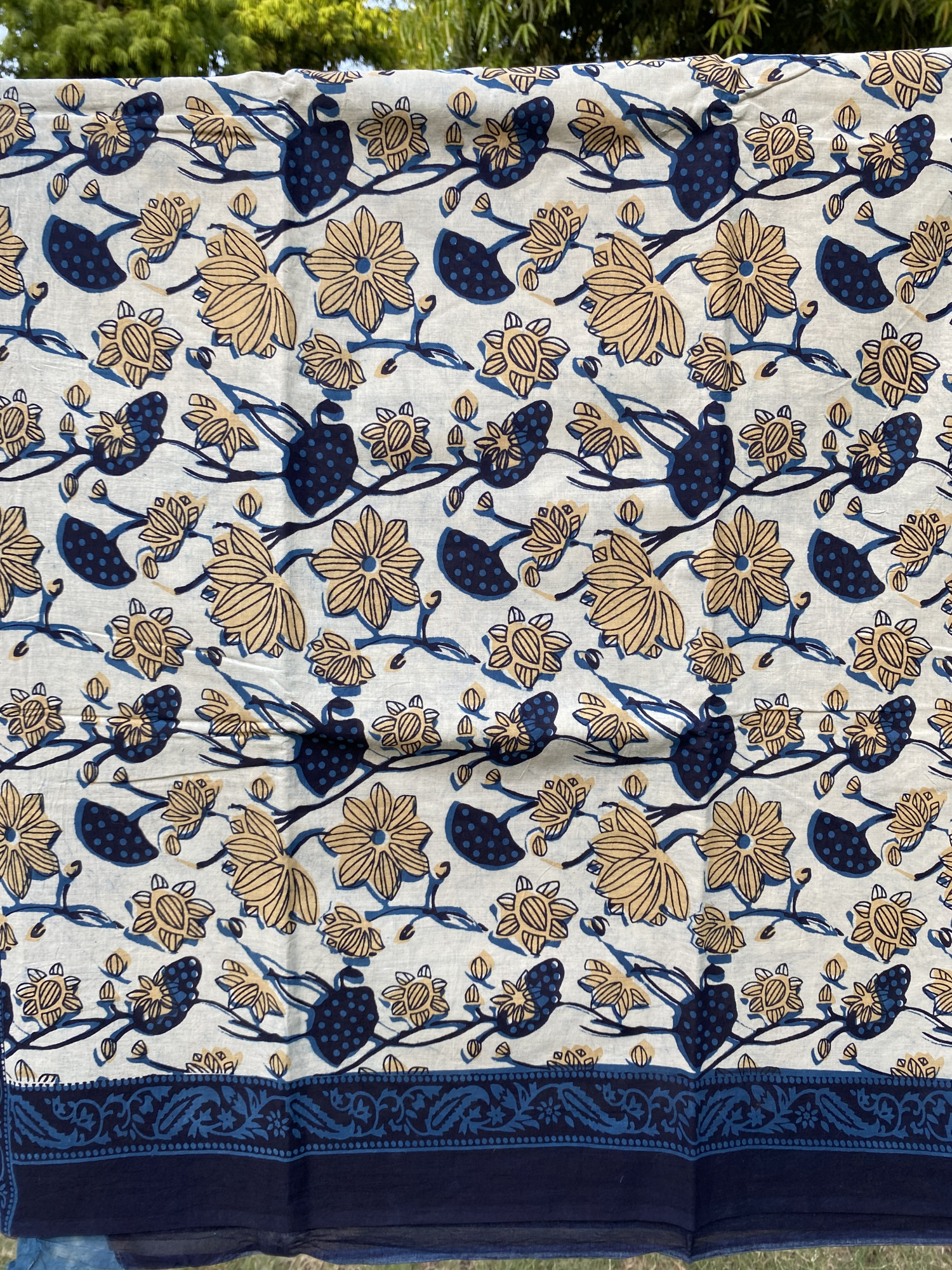 This saree is hand-printed, so slight irregularities in print or color are a sign of its handmade nature and not a defect.